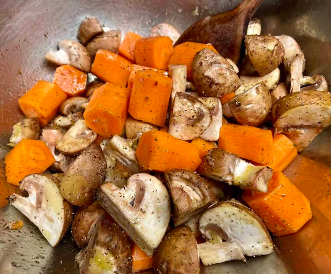 - Clean the mushrooms with a paper towel and roughly chop